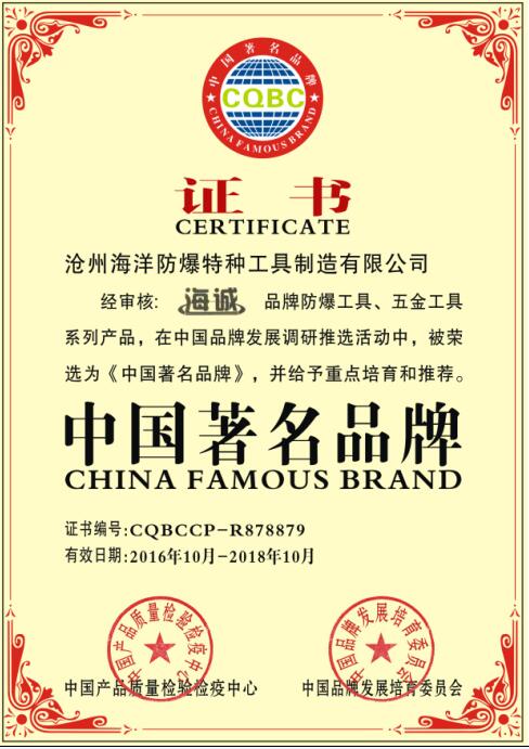 “海誠(chéng)”商標(biāo)榮獲中品,標(biāo)志著我公司生產(chǎn)的設(shè)備和技術(shù)達(dá)到水平,產(chǎn)品質(zhì)量得到了廣大客戶的喜愛與推廣。我公司(海洋防爆工具)將不忘初心,始終站在時(shí)代前言,用海洋人的勤勞和智慧譜寫著海洋輝煌的明天。